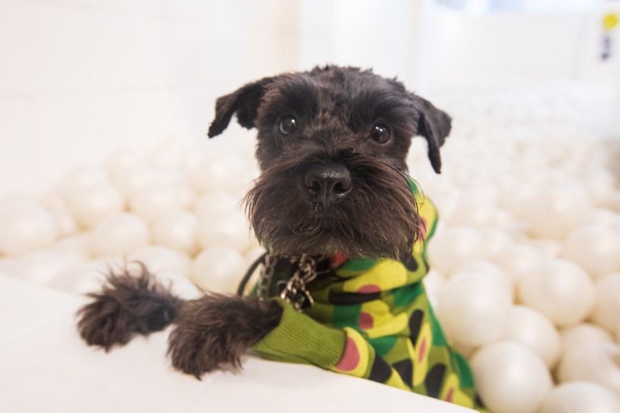Black mini schnauzer living a colourful life.