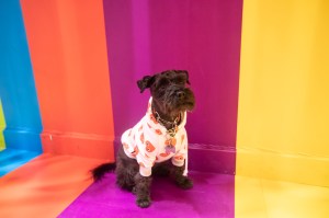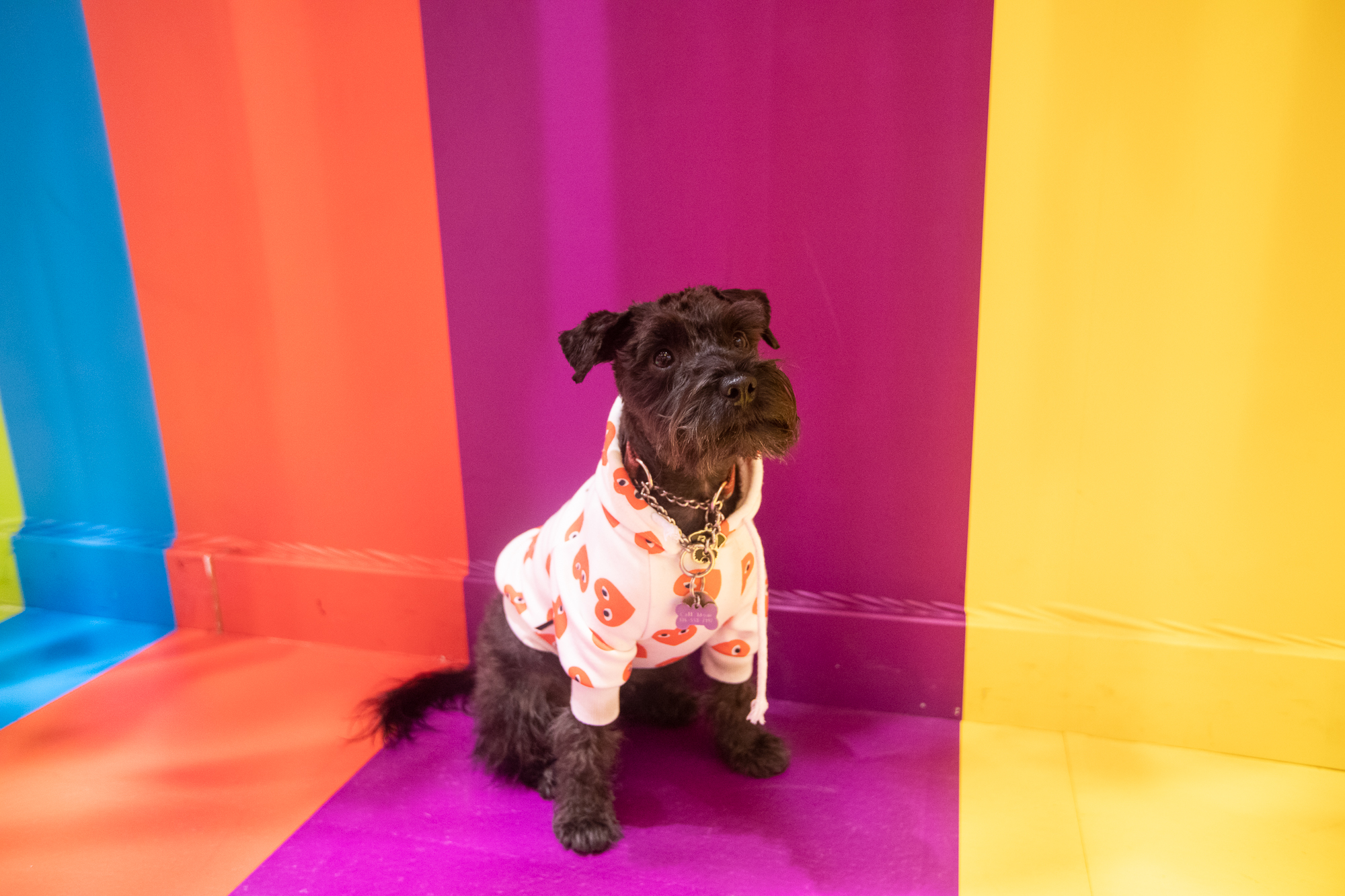 Black mini schnauzer living a colourful life.
